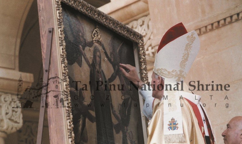 Here we have to mention the two great pilgrims of Ta' Pinu, Saint John Paul II (May 1990) and Pope Benedict XVI who on the 18th of April 2010 presented a golden rose to Our lady of Ta' Pinu.
